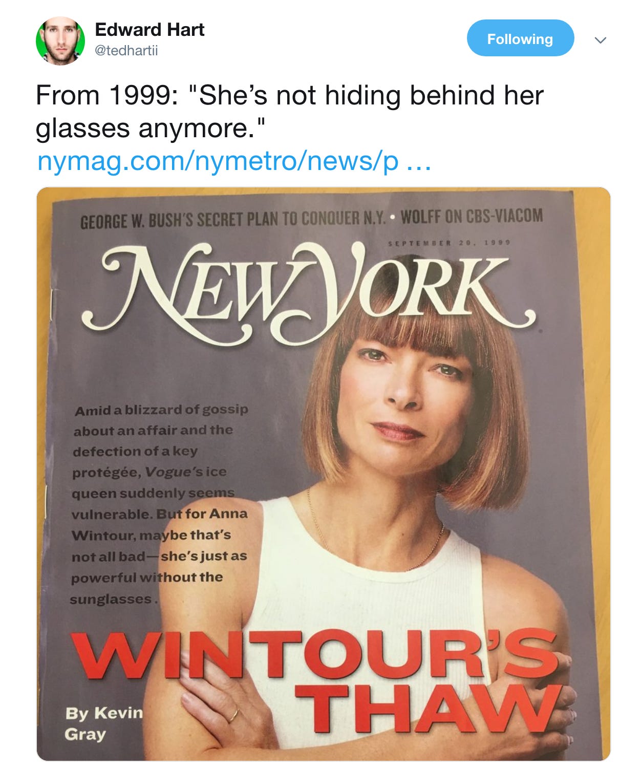 While you’re still luxuriating in the last dregs of content from Monday night’s Met Ball, do your inner Emily Charlton a favor and read this salaciously yummy 1999 New York mag cover story on Anna Wintour that @tedhartii pulled out of the archives yesterday: