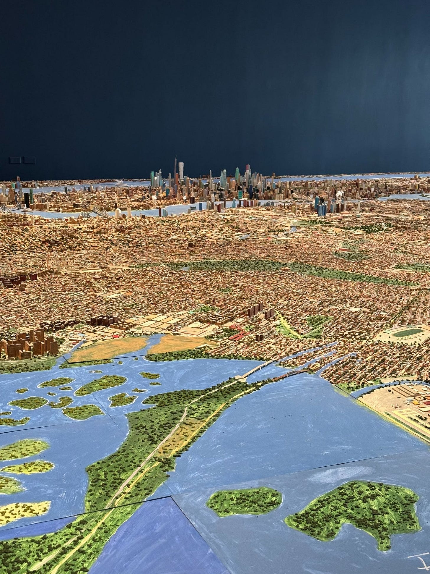 Meanwhile, uptown at the Museum of the City of New York, I finally got to see Joe Macken’s model of New York City, which opened last February after Macken became a TikTok sensation. (Per this Artnet story on him, Macken himself had never actually seen the entire model city in one piece until it was displayed at an upstate fair last summer — he’d been stacking the panels in a storage unit, which is some real Doing It For The Love of the Game shit.)