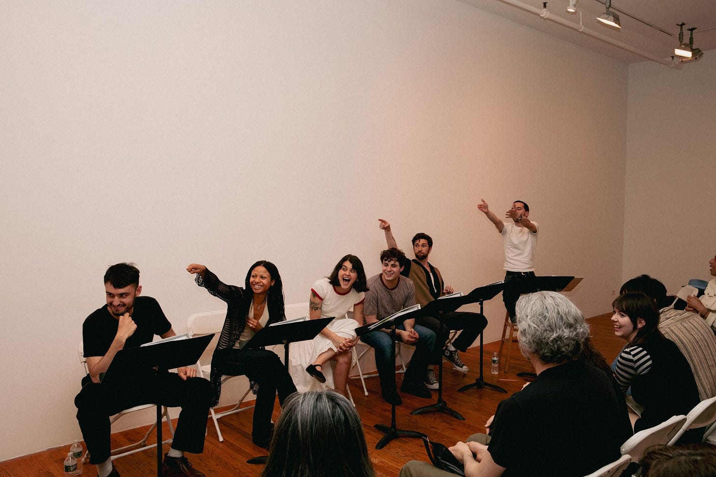 I’ve gone to a couple of staged readings before done by friends for funsies; this was my first time experiencing the table read as an industry event, where the room was full of commercial theater and film producers. Rachel and David have been doing these amazing renegade theater readings with their crew via @goodevening.rep for as long as I’ve known them; I think the second time I met Rachel was at a reading they put on inside a menswear store downtown in 2023. (That event was so packed that night that I literally fell to my knees and fainted; some nice Australian girls helped me up). It’s been a point of pride to work with Rachel on Deez Links events ever since. Nothing is better than working with friends, or seeing how they raise the bar for New York’s cool factor every time. PROUD OF YOU RACHIE!!