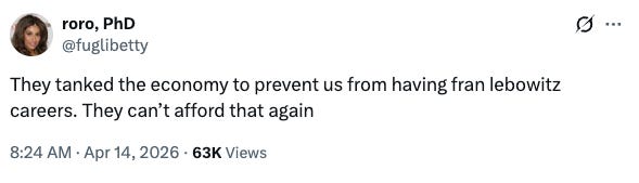 It’s an interesting time for Dunham to invite us to revisit those years with her, at a moment when millennial nostalgia practically dictates the cultural agenda, and also when so many aspects of her ambition are revealed to be startlingly prescient — Girls is nearly flawless, yes, but also remember Lenny Letter, the original magazine-as-longform-newsletter??? (At lunch, we talked about Substack, of course, and how Hannah Horvath would have loved the platform <- a detail that makes it in the piece, though some classic Dunham riffing on Hannah’s Substack life was sadly cut: “She would have published a lot at an aggressive cadence and acted like she was running a media empire, but she would have had between 150-300 followers, and that would have been enough.”)