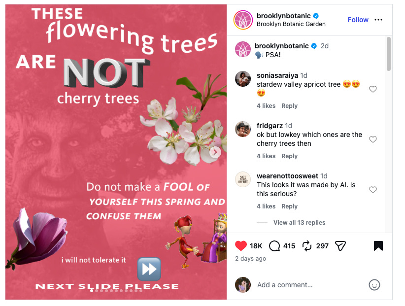 Exhibit B: The Brooklyn Botanic Garden on what a bad job everyone does every spring re: identifying cherry blossoms correctly.